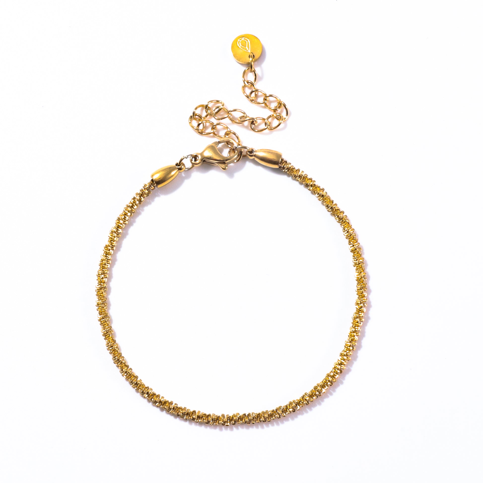 A twisted gold bracelet made from durable 18k gold stainless steel. Adds a touch of glamour to any outfit.
